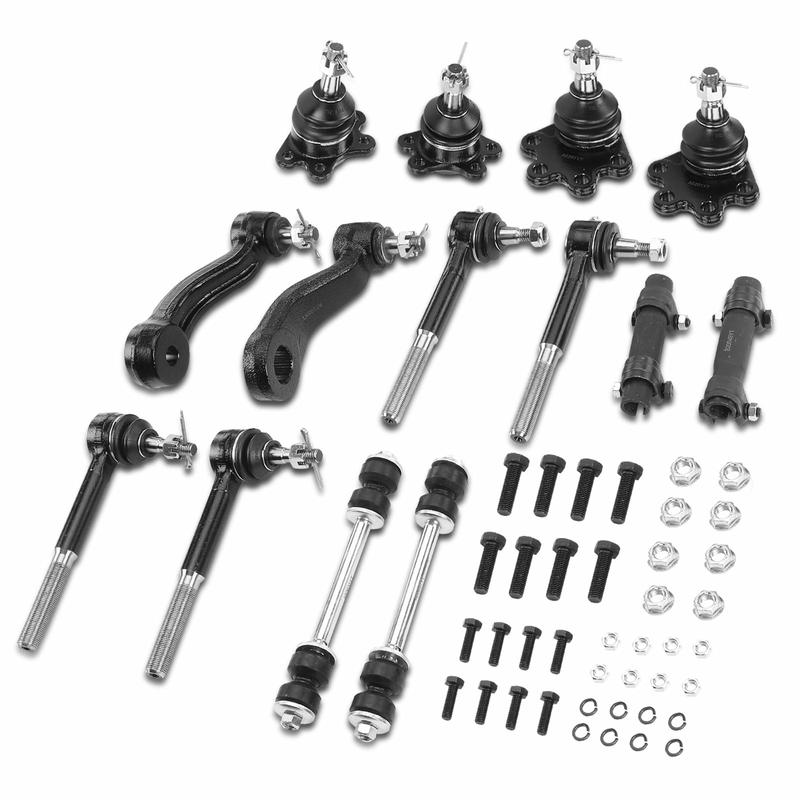 【Note-1】 Idler Arm -- Without Bracket, Heavy Duty Design. 【Note-2】 Front Lower Ball Joint -- Bolt On Type. 【Note-3】 Front Stabilizer Bar Link Kit -- Heavy Duty Design. 【Note-4】 Tie Rod End Adjusting Sleeve -4.72 (in) Length, 11/16 (in) X 18 Threads